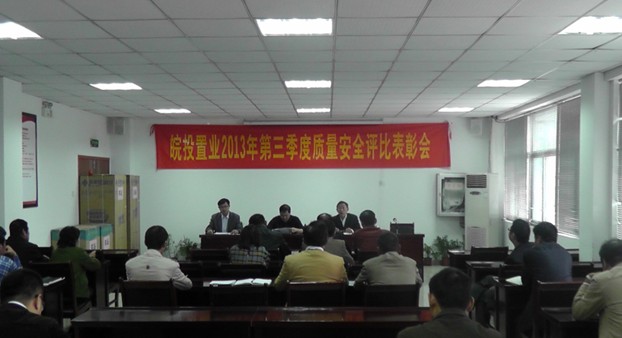2013年10月19日上午,工程管理部組織召開公司2013年三季度質量安全評比表彰會,公司副總經理丁昌華、總經理助理劉賢明、各在建項目施工單位、監理單位、項目部相關人員參加會議。