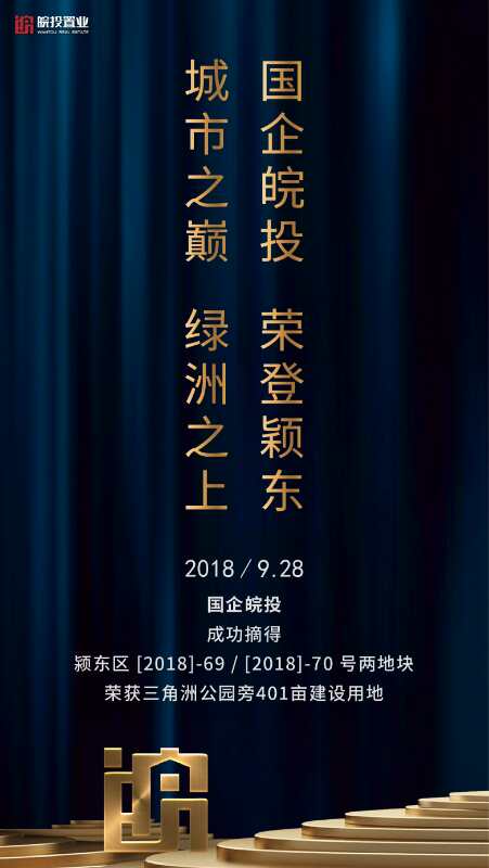 2018年9月28日下午15時,在阜陽市公共資源交易中心,皖投置業公司通過招拍掛成功競得阜陽市2018-69號宗地、2018-70號宗地,合計總面積401.412畝。