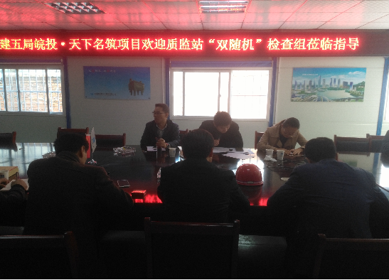2017年11月1日上午,合肥市質量安全監督站相關領導蒞臨合肥天下名筑一期二標項目進行“雙隨機”檢查并召開專題會議,天下名筑現場主要負責人,監理單位、中建五局相關負責人參加。