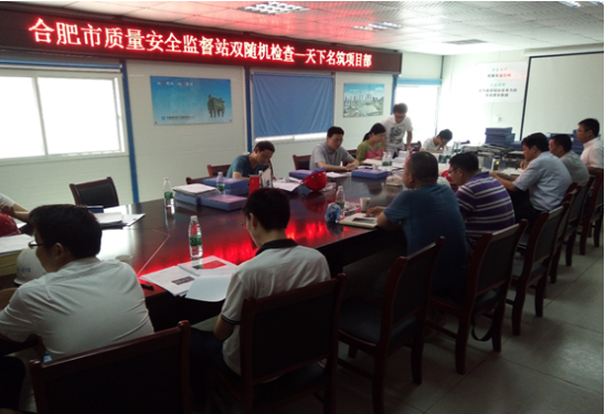 2017年6月15日上午,合肥市質量安全監督站相關領導蒞臨合肥天下名筑項目進行雙隨機檢查并召開專題會議,天下名筑現場主要負責人,監理單位、中建五局相關負責人參加。