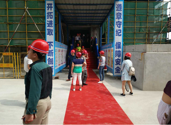 在主持人宣讀完活動流程及安全須知后,業主們在工作人員處領取并佩戴了安全帽,在置業顧問的帶領下井然有序地參觀了項目一標段工地。現場建材整齊劃一地擺放著,沿路的安全護欄及指示標牌、干凈整潔的施工場地給客戶們留下了深刻的印象。