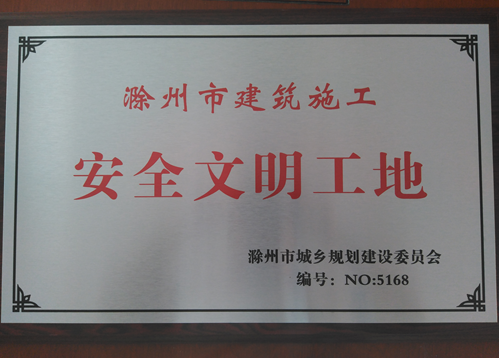 2016年8月31日,滁州市城鄉規劃建設委員會評審工作組蒞臨水岸星城綜超項目工地現場,對現場安全文明情況進行實地考核。經過考評,皖投·水岸星城二期綜超項目榮獲“滁州市建筑施工安全文明工地”稱號。