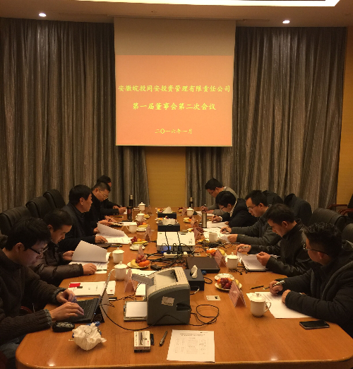 2016年1月15日下午,皖投同安投資管理有限責任公司組織召開第一屆二次董事會,會議由皖投同安公司董事長楊勝平主持,各董事出席會議,監事列席會議。