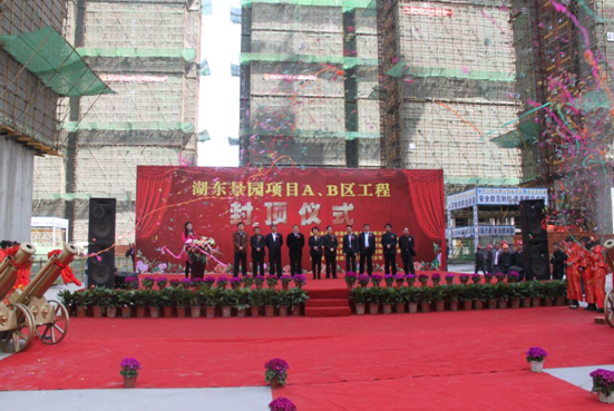 2012年3月31日上午10時18分,湖東景園項目A、B區工程主體結構封頂儀式在項目現場隆重舉行。