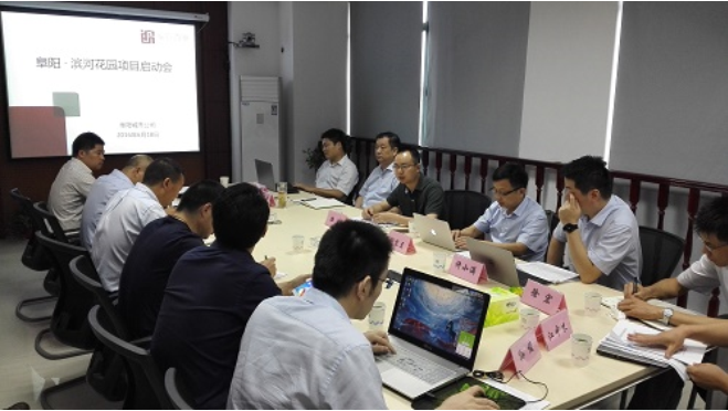 2016年6月21日,阜陽濱河花園項目啟動會暨第一次PMO會順利召開,公司高管、總部各中心及阜陽皖投置業公司相關負責人參加。