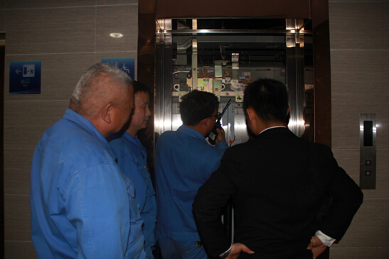 下午17:10,演練正式開始。酒店監控中心接到救援電話核實情況后立即通知酒店工程部,隨即啟動緊急應急預案,值班人員第一時間趕至現場安撫被困人員并電話告知電梯維保公司。