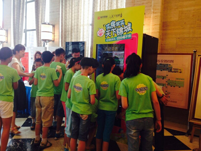 6月8日下午,眾多大朋友和小朋友如約來到活動現場,穿上由天下錦城贈送的T恤,一個個看起來充滿活力。本次共到訪40組家庭,下午2:00左右,活動在主持人的宣布下正式開始,小朋友們排起了長隊參與到比賽當中,袋鼠跳、大腳板一家人考驗著小朋友們的運動素質和默契配合,瘋狂拼圖鍛煉了小朋友們的智力和耐心,還有快樂大腳射門,讓小朋友們提前感受到了世界杯的激情四射。本場活動還與騰訊房產合作,在現場布置了微信自動販賣機,到場嘉賓只要用微信添加天下錦城的公眾微信號(微信號:wxjc),并在微信販賣機面前喊出“買房就買天下錦城”,便可獲得各種爽口的飲料。