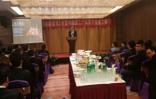 2015年4月10日下午,皖投·水岸星城——最美四月天,購(gòu)房嘉年華全城銷售聯(lián)盟成立儀式暨產(chǎn)品推介會(huì)在皖投·齊云山莊酒店盛大啟幕。本次活動(dòng),邀請(qǐng)了合富輝煌滁州區(qū)域近100名一線銷售精英齊聚一堂,現(xiàn)場(chǎng)座無(wú)虛席,反響熱烈。