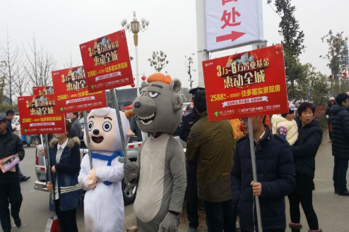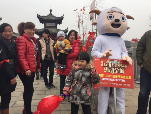 當(dāng)天一早,“水岸星城”就帶著灰太狼和喜羊羊兩大萌物走上街頭,宣傳隊(duì)伍從積玉橋出發(fā),經(jīng)過洪攔橋,最后到達(dá)太平橋。萌物們所到之處無不成為焦點(diǎn),憨態(tài)可掬的喜羊羊和灰太狼站在了一起,立即引起了路人的圍觀,儼然成為街頭明星!它們一邊與觀眾們親密互動(dòng),一邊派發(fā)小禮品,圍觀的小朋友們爭(zhēng)相和它們拍照留念,場(chǎng)面熱鬧非凡,笑語不斷。在萌物與觀眾們互動(dòng)的過程中,水岸星城的工作人員適時(shí)派發(fā)單頁、介紹項(xiàng)目正在進(jìn)行的銷售活動(dòng),傳遞項(xiàng)目最新的銷售信息。