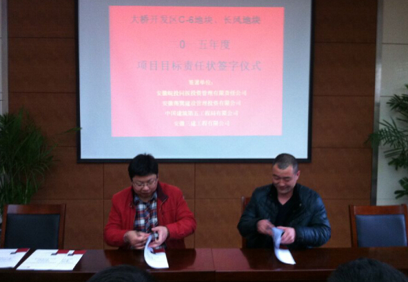 2015年3月10日下午,安慶城市公司與監(jiān)理、總包單位2015年度年度目標責任狀簽字儀式在安慶城市公司二樓會議室舉行,公司工程技術部,安徽南巽監(jiān)理、中建五局、安徽三建等相關人員出席并參加簽字儀式,簽字儀式就2015年年度目標責任達成一致。