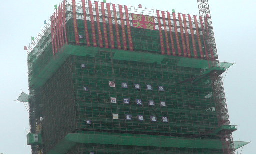 2015年11月8日上午,禮炮齊鳴、彩幅林立,天下錦城R1地塊公寓工程主體結構全面封頂。