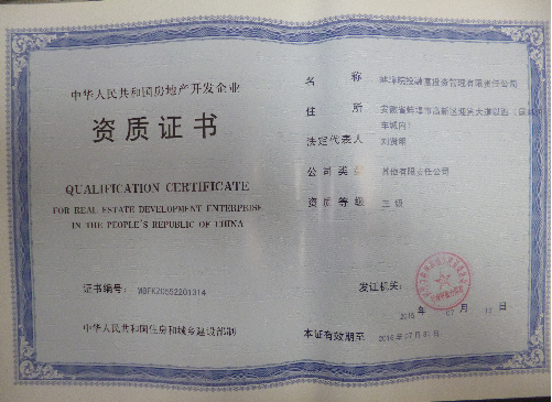 近日,經市住建委、資料科、質量監督局等多部門相關負責人的相互協調、嚴格審查,蚌埠皖投融富公司順利獲得住房和城鄉建設部頒發的“房地產開發三級資質證書”。