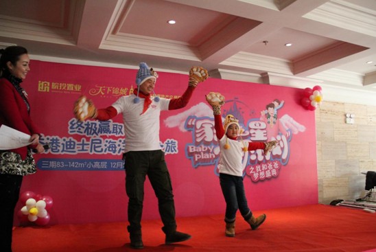 下午2點活動正式開始,【天下錦城】幸福天使幼兒園的老師和小朋友們給我們帶來了精彩舞蹈及動感的架子鼓表演。當天共到場的50組家庭,其中前15名家庭還排練了寶寶與爸爸的精彩合作表演。有羞澀的爸爸跳舞,丫丫學語的寶寶唱歌,也有古靈精怪小頑童朗誦……他們多才多藝,天真無邪。經過評委的點評打分及大眾評委的忠實表決,角逐出15名家庭的最終排名,并頒發獎狀和獎品。精美的玩具套裝、兒童自行車、兒童點讀機和大獎”香港迪士尼海洋公園“讓每一個獲獎家庭都喜笑顏開。