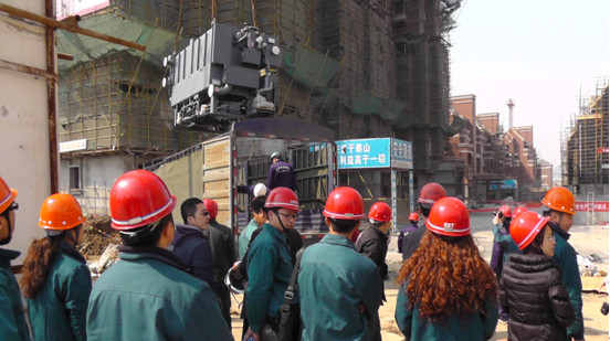 天下錦城采取集中供暖、供冷雙聯供中央空調形式,實現經濟、節能、環保,此次施工的R4地塊空調建筑面積為7.2萬平方米,空調主機位于9號樓地下室,主機下地下室和地下室路面拖運是工程施工重點。吊裝的2臺空調主機搬入重分別是23T和7.4T,這樣的重量和高度要求讓施工現場氛圍緊張。過程中,領導們有條不紊組織、調動著相關人員;操作人員認真傾聽指示,聚精會神地操作設備;工作人員也是凝神聚力,全力配合做好各項工作。隨著吊裝機緩緩下降,兩臺溴化鋰機組一一被順利地放到目標位置,天下錦城R4地塊雙聯供工程溴化鋰機組吊裝工程順利完成。