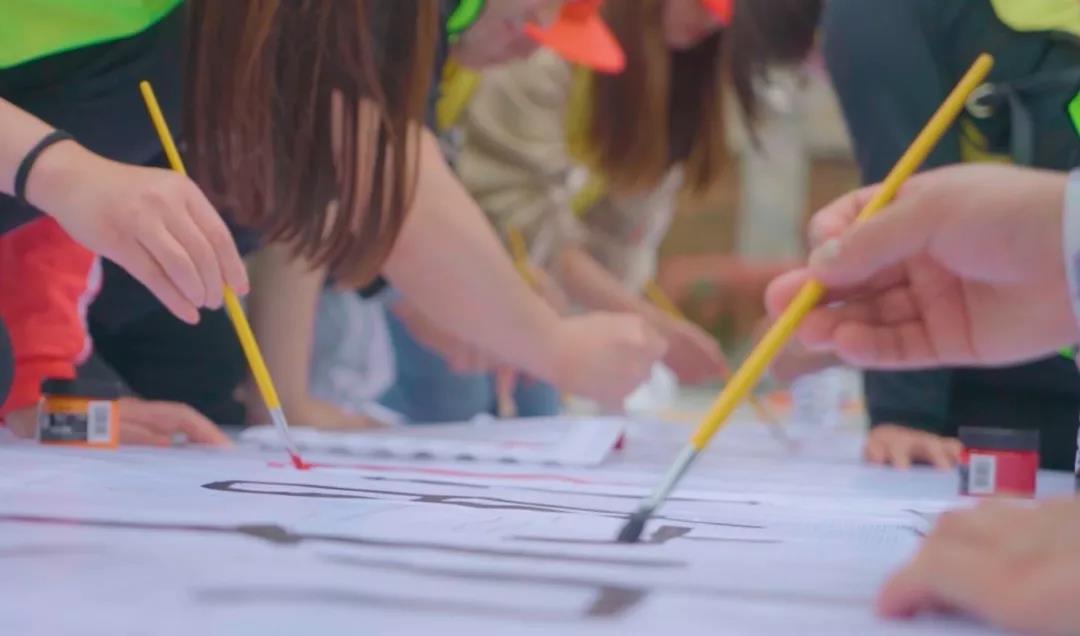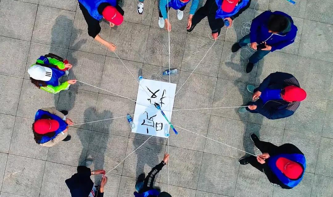 “皖投”兩個字,哪怕是一個人稍有不慎,字幅都無法完成,在一眾人的通力合作下,完美呈現。