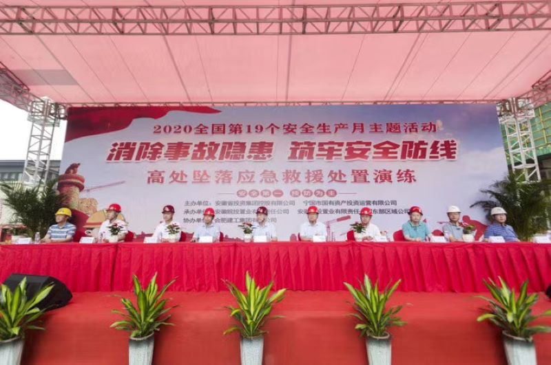 為全面貫徹落實各級政府部門、集團公司、皖投置業公司關于安全生產月活動的重要精神,積極開展以“消除事故隱患、筑牢安全防線”為主題的“安全生產月”活動,進一步提高公司各在建項目人員安全生產意識,6月23日上午,由安徽省投資集團、寧國市國投公司主辦,皖投置業公司、東部區域公司承辦的2020年安全生產月活動暨寧國燕津湖畔項目高處墜落應急救援處置演練活動在燕津湖畔錦園現場舉行。