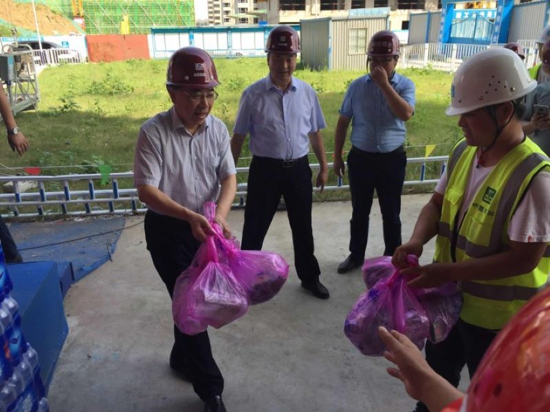 活動首先轉達了集團公司對在高溫酷暑下,堅守在項目施工一線的員工表達了感謝和慰問,叮囑廣大員工預防中暑,加強防暑意識;同時要求各參建單位要合理安排工作時間,增加防高溫中暑措施,避免高溫時段作業,切實做好防暑降溫工作,確保施工一線人員身心健康。隨后,現場向產融中心項目各參建單位分發礦泉水、防暑藥品等防暑降溫物品,給炎炎夏日帶來了一縷清涼。