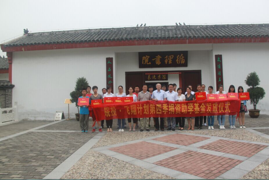 2015年8月19日,皖投置業舉辦的”皖投·飛翔計劃第四季捐資助學基金發放儀式”在壽縣一中順利舉行,安徽省投資集團控股有限公司總經理助理、紀委副書記黃沁漣出席活動儀式,皖投置業工會主席及營銷客戶中心有關人員參加,并將助學金100000元及各類學習用品交付于本季受助的20名高考學子,傳達了對貧困家庭學子的殷切希望。