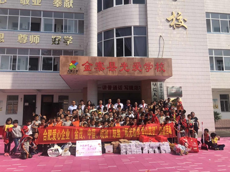 喜迎七十華誕,感恩偉大祖國,為積極踐行國企社會責任,公司聯合中國金茂合肥公司、中信銀行合肥望江西路支行共同成立“陽光助學 愛心筑夢”——合肥愛心企業聯盟,于9月25日、26日開展愛心助學活動,先后走進金寨縣燕子河初級中學、水竹坪實驗學校水坪教學點、金寨縣光愛學校。活動前,公司積極與學校溝通,按需捐助,同時發動公司員工積極捐物,奉獻點點愛心。