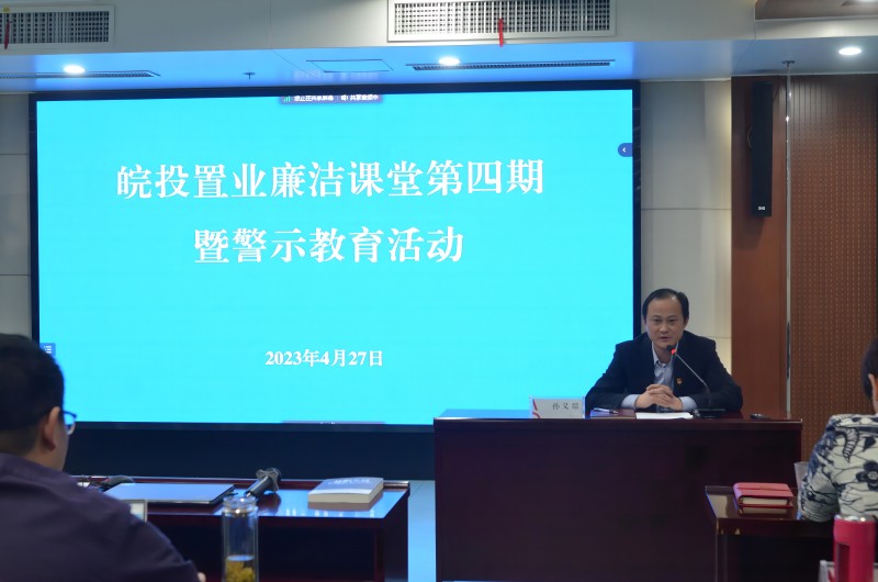 為深入學習貫徹黨的二十大精神,持之以恒推進全面從嚴治黨,進一步筑牢黨員干部的紀律規矩意識、廉潔從業意識,4月27日,公司舉辦“皖投置業廉潔課堂”第四期,公司黨委委員、紀委書記孫義瑞主持并講話,全體員工參加。